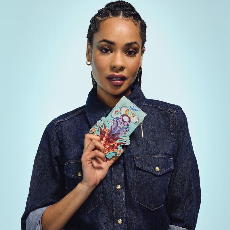 Cheer on your favorite team with a game-winning play for your collection! The Loungefly NBA New York Knicks Patch Icons Zip Around Wallet features embroidered patches on the front and back. The team’s name appears in a strip of orange and white, contrasting the wallet’s blue background. With four slots for holding cards and a clear slot to hold ID, this game-day-ready accessory has plenty of room to carry your gear while sporting your team spirit. The Loungefly NBA New York Knicks Patch Icons Zip Around Wallet is made of vegan leather (polyurethane). Wallet zips closed with sturdy metal hardware. Additional features include applique and printed details. Take note of the coordinating inside lining.This wallet is an officially licensed NBA product.Wallet dimensions: 6”W x 4”H 15.2 cm W x 10.2 cm H